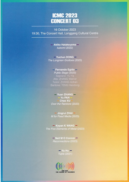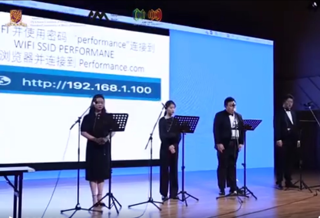 “Public stage” was selected for the ICMC 2023 conference in Shenzhen and premiered on the 16th of October. The singers that performed the work were: Soprano: YU Ya Alto: ZHANG Wan’er Tenor: ZHANG Aohan Baritone: TENG Haodon.