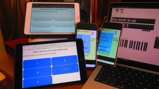 When The Self of Us Becomes Ours premiered at the TENOR 2025 conference in Beijing. Wu Siyao, Zhang Yanzhuoya at Erhus, and Yang Manting, Huang Yushan at Zhonghus played the version for two Erhus and two Zhonghus. The conference took place at the Central Conservatory of Music in Beijing on October 25, 2025. The concert was curated and organized by Zhang Yuan and Li Yunpeng.